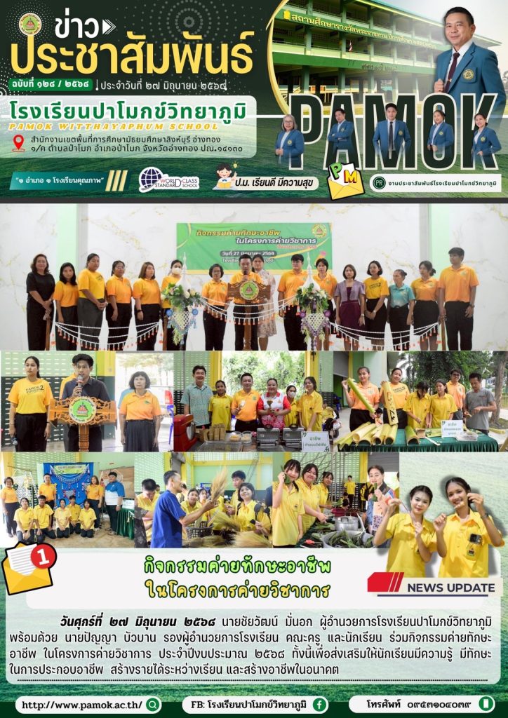 วันศุกร์ที่ ๒๗ มิถุนายน ๒๕๖๘ นายชัยวัฒน์ มั่นอก ผู้อำนวยการโรงเรียนปาโมกข์วิทยาภูมิ พร้อมด้วย นายปัญญา บัวบาน รองผู้อำนวยการโรงเรียน คณะครู และนักเรียน ร่วมกิจกรรมค่ายทักษะอาชีพ ในโครงการค่ายวิชาการ ประจำปีงบประมาณ ๒๕๖๘ ทั้งนี้เพื่อส่งเสริมให้นักเรียนมีความรู้ มีทักษะในการประกอบอาชีพ สร้างรายได้ระหว่างเรียน และสร้างอาชีพในอนาคต