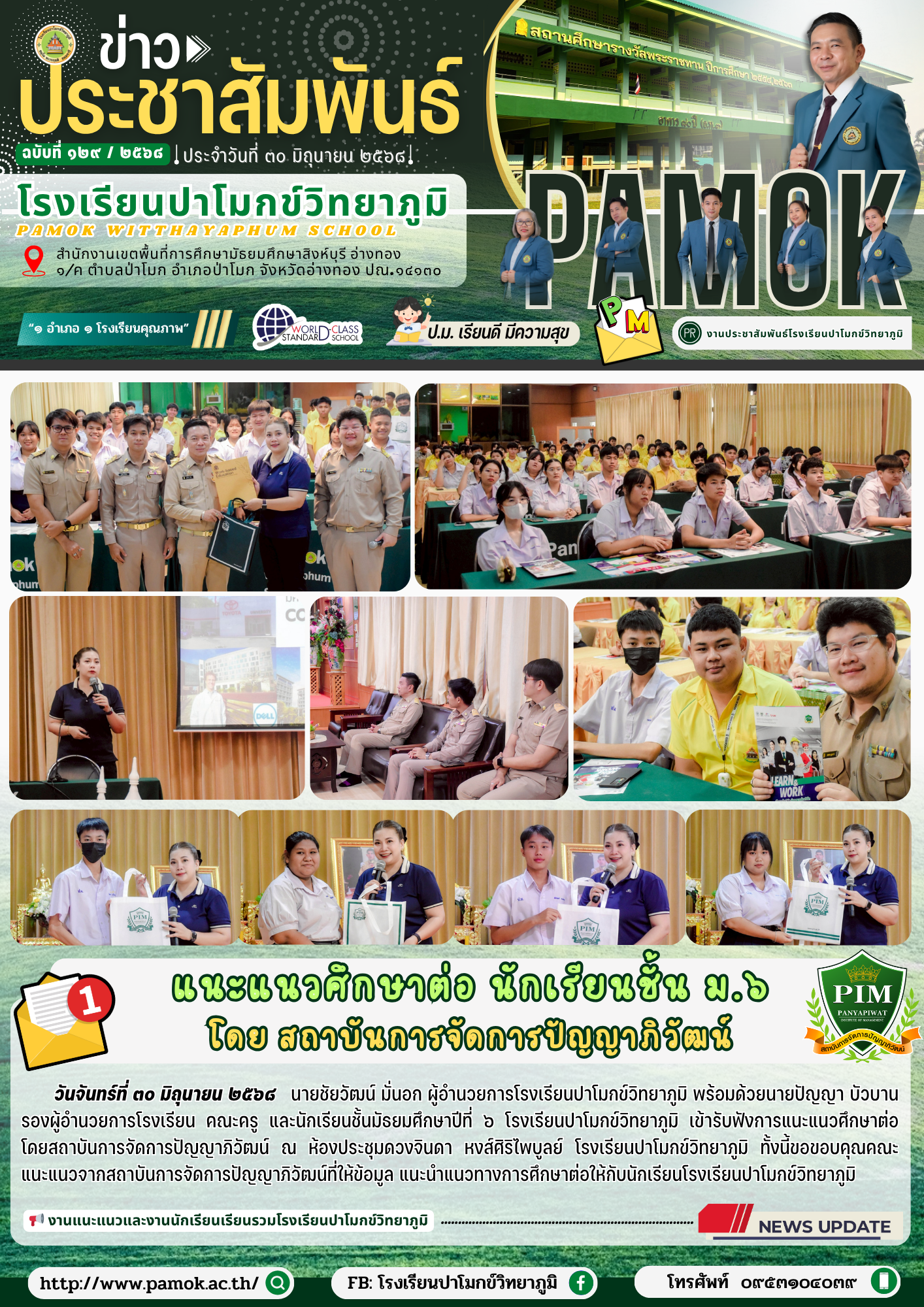 นักเรียนเข้ารับฟังการแนะแนวศึกษาต่อ โดยสถาบันการจัดการปัญญาภิวัฒน์