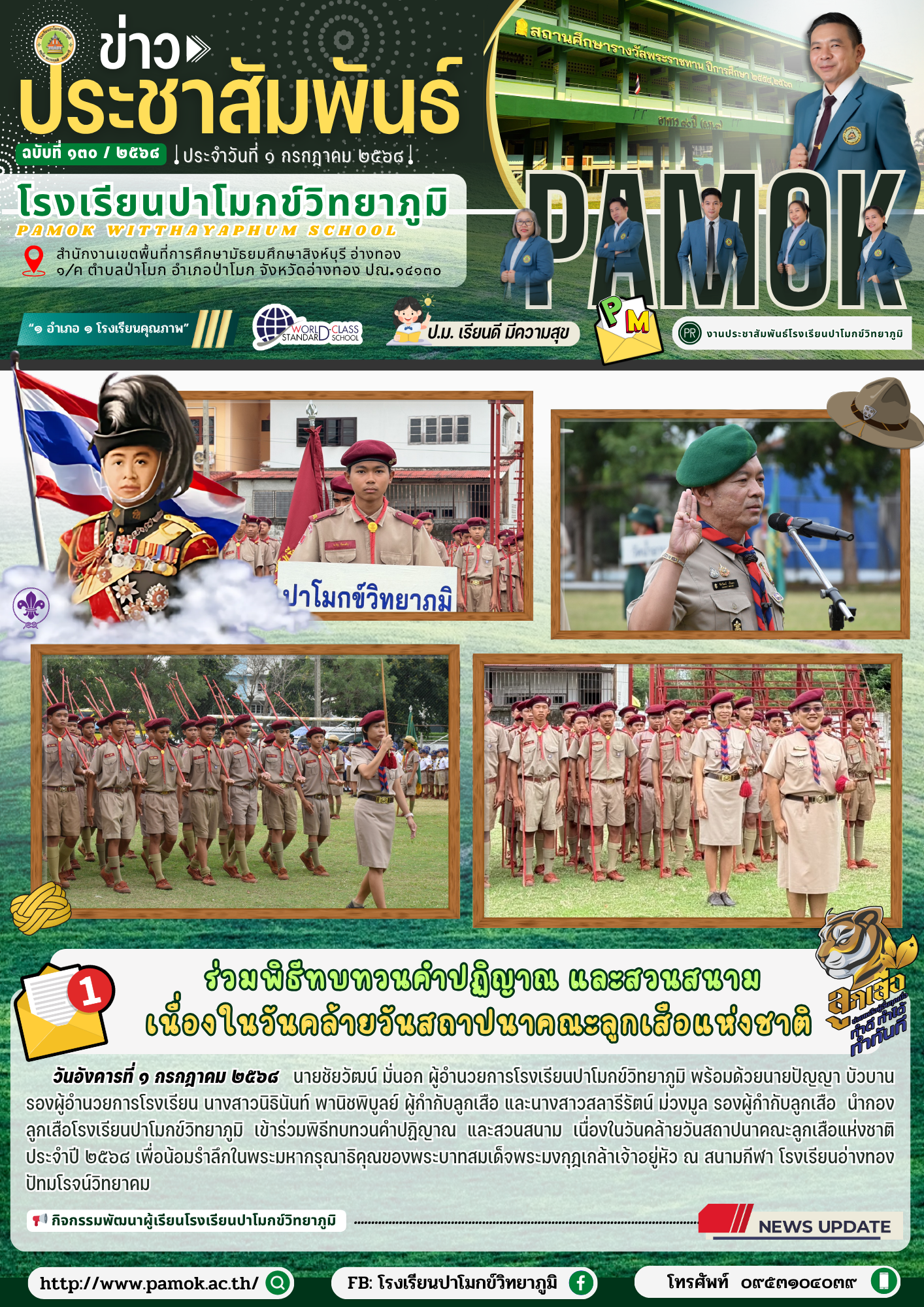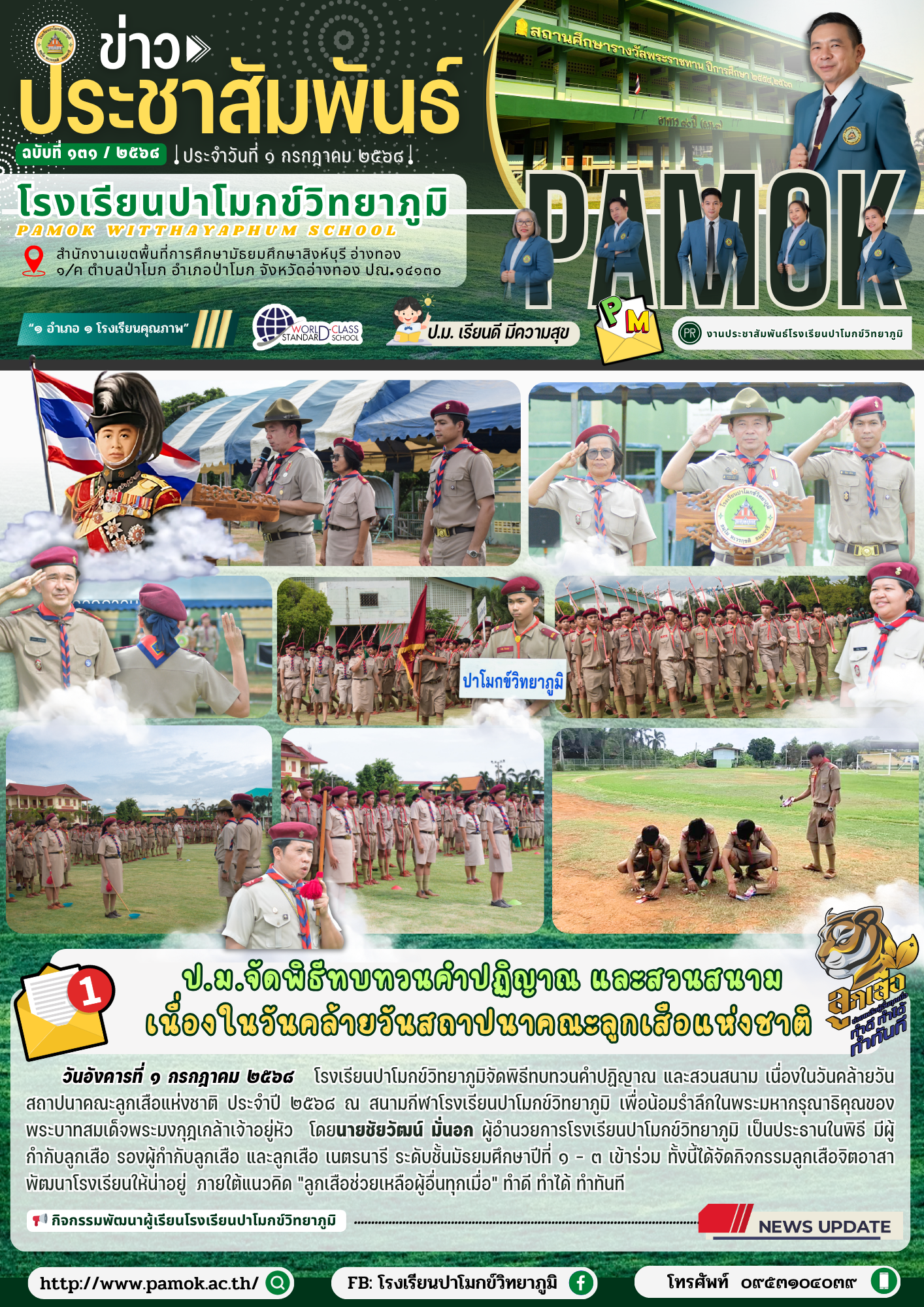 กองลูกเสือโรงเรียนปาโมกข์วิทยาภูมิ เข้าร่วมพิธีทบทวนคำปฏิญาณ และสวนสนาม