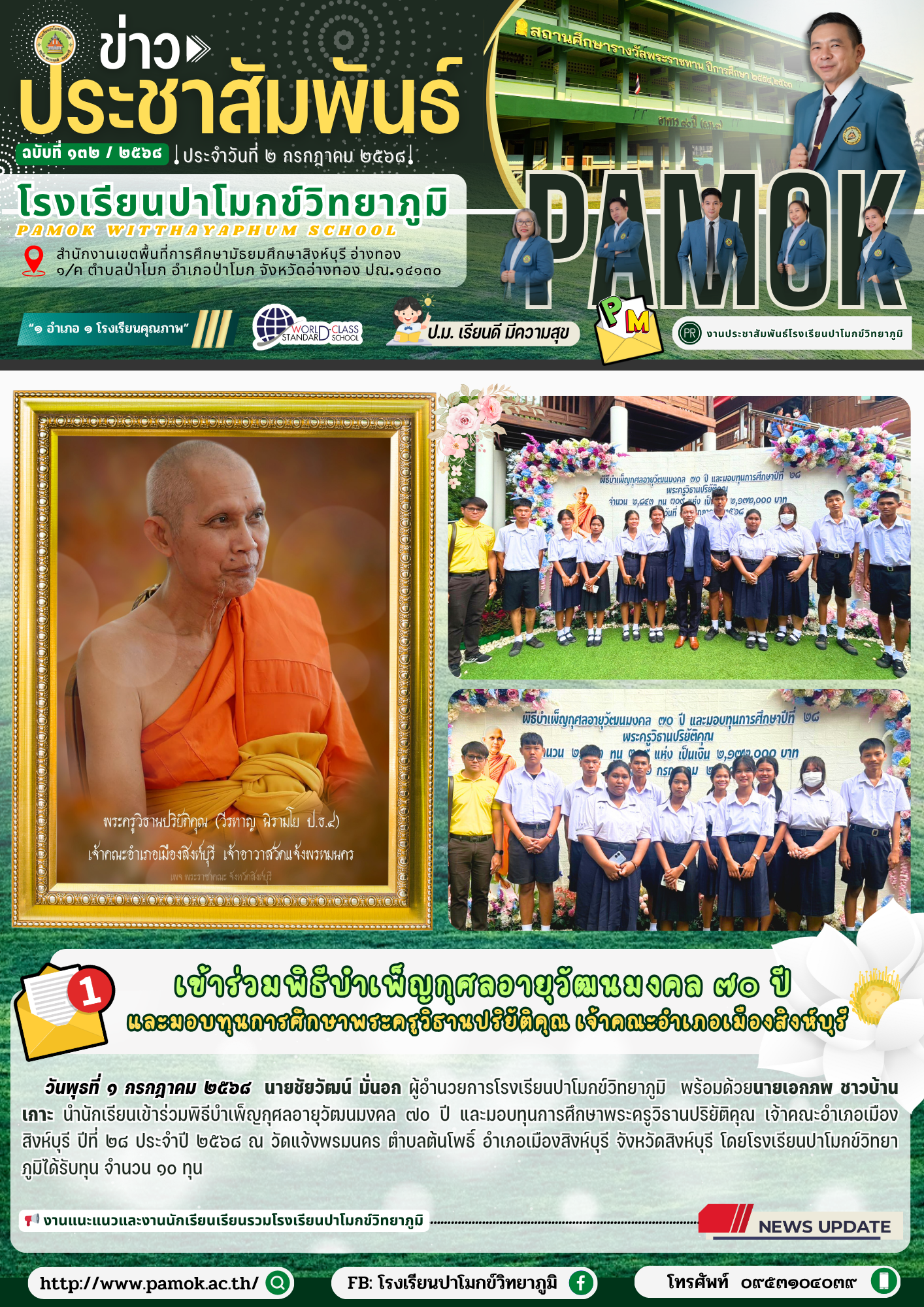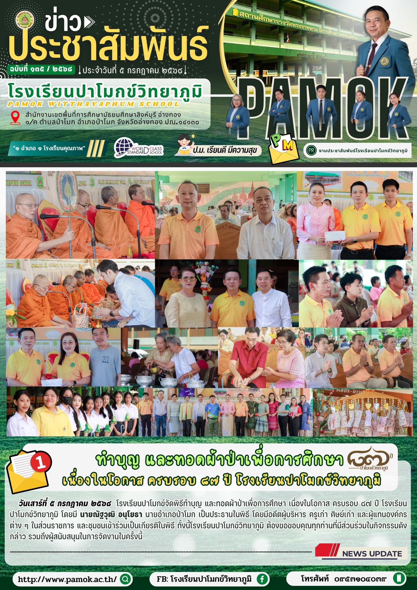 โรงเรียนปาโมกข์วิทยาภูมิ จัดพิธีทำบุญ และทอดผ้าป่าเพื่อการศึกษา เนื่องในโอกาส ครบรอบ ๘๗ ปี