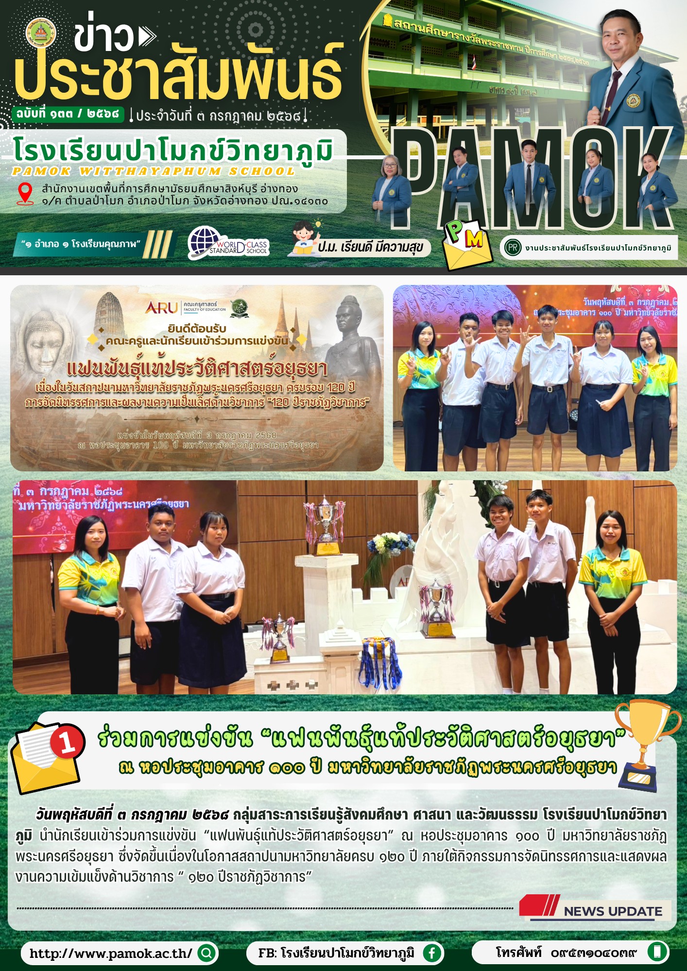 ผลการแข่งขันกีฬาชิงชนะเลิศแห่งจังหวัดอ่างทอง ประจำปี 2568 โรงเรียนปาโมกข์วิทยาภูมิ